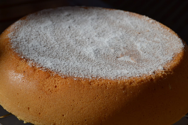 Se trata de un bizcocho genovés, que se suele usar para las tartas, pero que sólo está delicioso, y que es de lo más barato y fácil de hacer, con ingredientes que todos tenemos en casa. Es muy esponjoso, y al morderlo suena grrrrrrrsss, Os animo a probarlo, no creo que os desilusione.