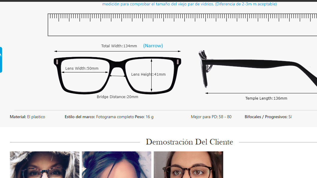En cada montura, si vais un poco hacia abajo, os ponen las medidas de la montura, así que podéis compararla con la montura que esteis usando en ese momento.