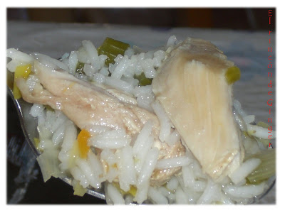 Picar las verduras en cuadraditos pequeños y hacer un caldo con ellas, el pollo y el agua.Salpimenar al gusto.Cuando esté preparado añadir el arroz 10 minutos.Ya está listo para servir.