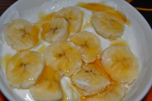 Se mezcla el queso con el edulcorante, se pone el plátano en rodajas, y el golden syrup. Y a disfrutar!!! Está riquiiiisimo